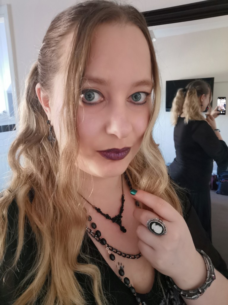 I have caught myself daring to dream of one day perhaps being able to model Goth fashion as plus size and disabled, be a representative for Ostomates in the Goth Community, as so far I just haven’t seen any to help me feel less alone, to give me any confidence that I can carry on wearing my signature style, that I can continue to identify as Goth. But that may only come from surviving cancer first.