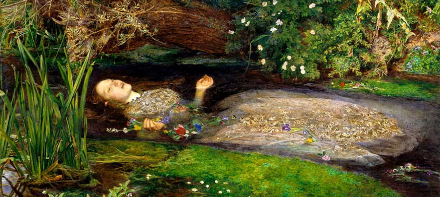 Ophelia. Elizabeth Siddal’s 12 hour pose in a bathtub of cold water for John Everett Millais’ painting affected her health and contributed to her early death
